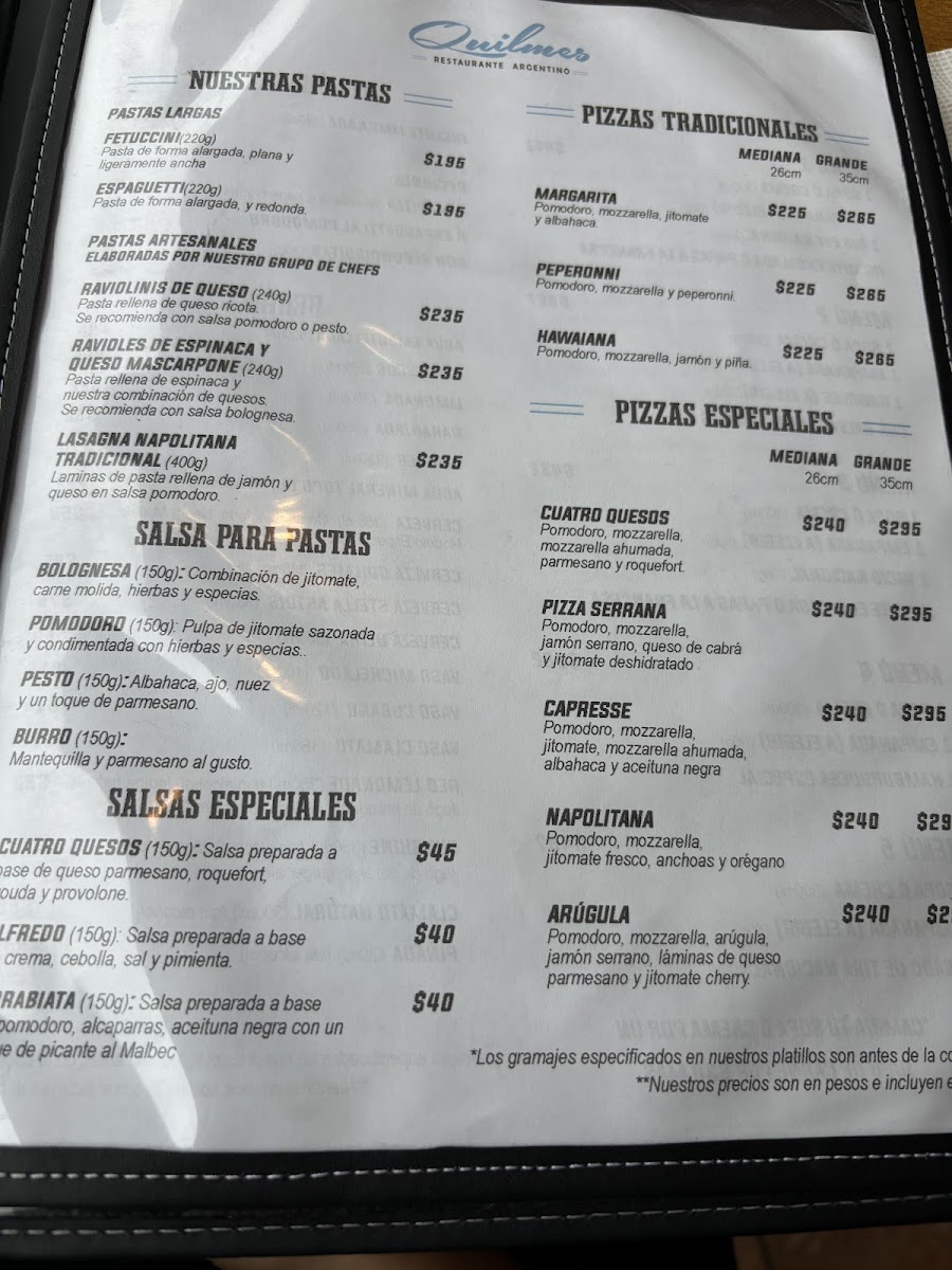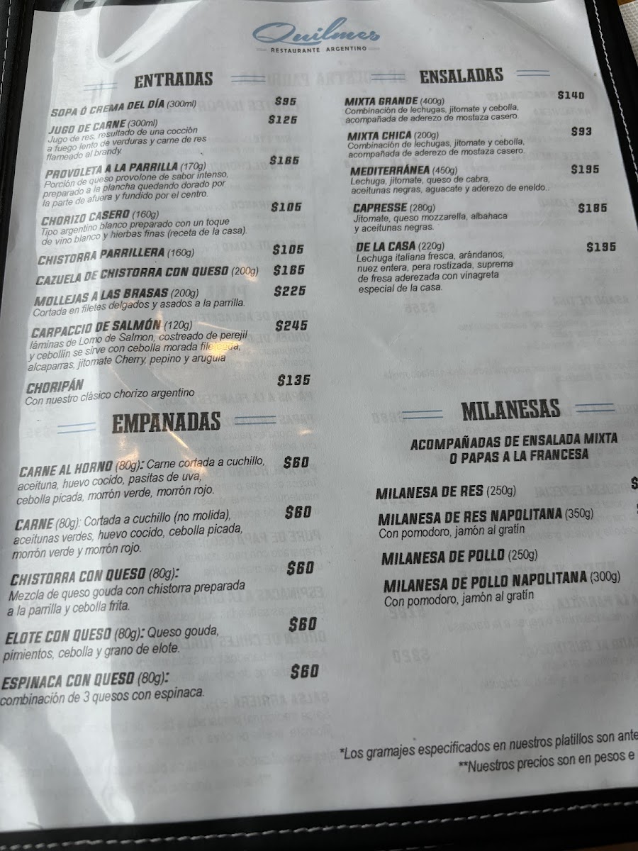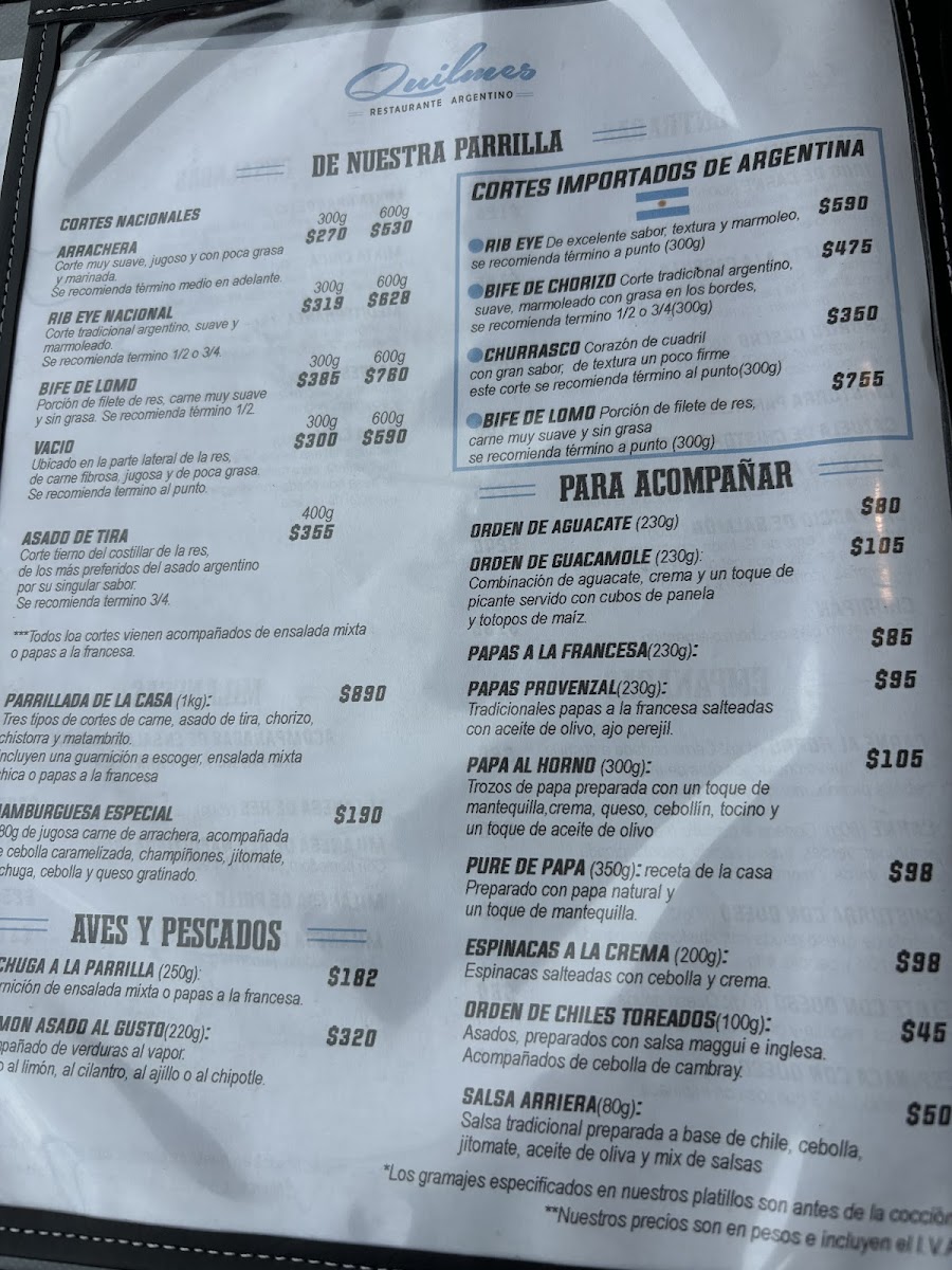 Parrilla Quilmes Menu